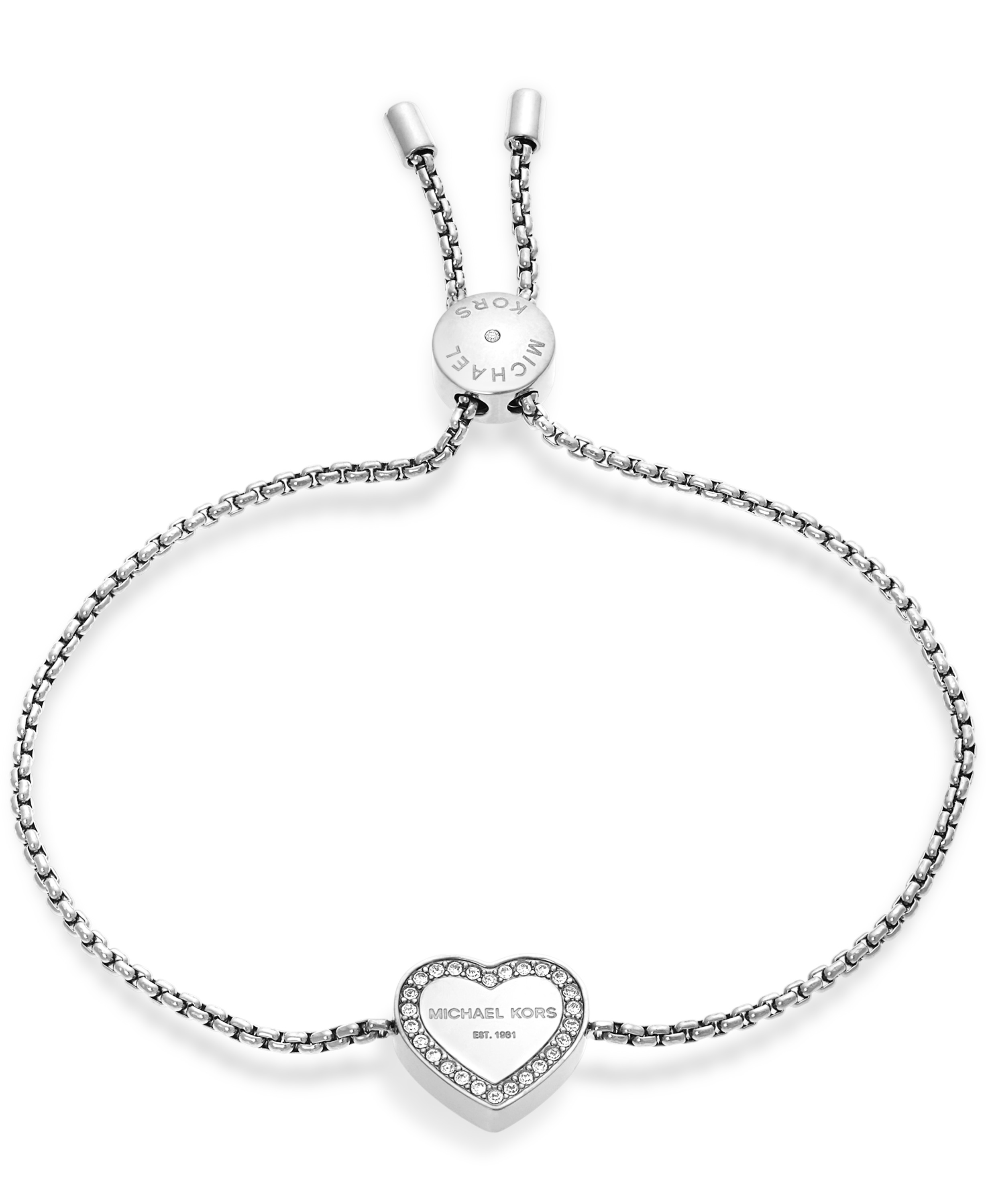 Figlio delle prime e storiche collezioni firmate dallo stilista americano, il bracciale Michael Kors Jewelry MKJ5390040 richiama quelle che sono le caratteristiche peculiari delle linee di gioielli Michael Kors. E la cosa più evidente è sicuramente il ciondolo a forma di cuore, qui impreziosito da una serie di cristalli e pietre di vetro ceco. Un dettaglio al cui interno è incisa la firma di Michael Kors, vero “sigillo di approvazione” dello stilista.