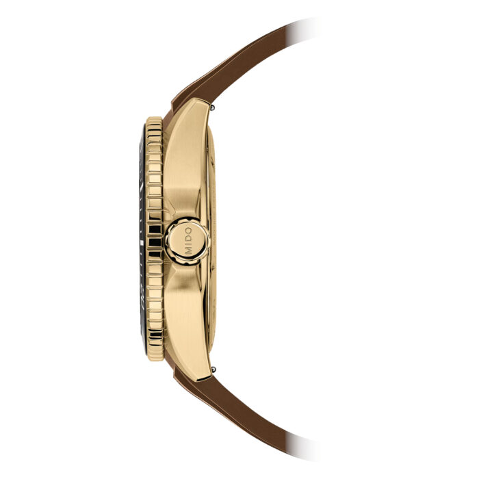 Mido Ocean Star GMT M026.629.37.291.00 è un orologio subacqueo davvero spettacolare. Un grandissimo pezzo di altissima manifattura svizzera, realizzato nel 2025 in una splendida versione con cassa in acciaio INOX color oro giallo e cinturino in gomma/caucciù color marrone.