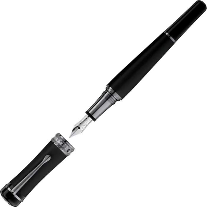 Il materiale scelto per questa penna stilografica è la classica pregiata resina esclusiva di Montblanc. Di nero, la resina qui usata è gradevolmente lucida ed opacizzata. Un dettaglio che rende le finiture rutenio effetto brunito ancor più belle.