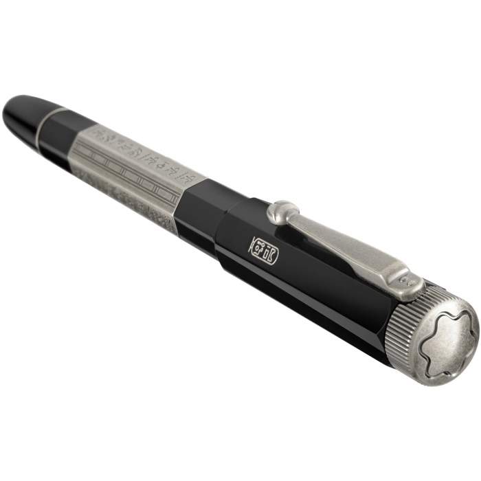 Realizzata in pregiata resina color nero e metallo “anticato”, la Montblanc Heritage Egyptomania Doué 125483 conserva sostanzialmente tutti gli elementi tipici della penna a cui è ispirata. Non manca nemmeno la piccola incisione con il lettering “Montblanc” realizzata con geroglifici. Ma non è questo l’unico dettaglio “egizio” di questo strumento da scrittura.