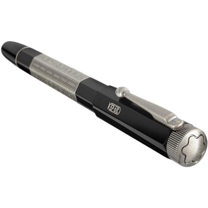 Realizzata in pregiata resina color nero e metallo “anticato”, la Montblanc Heritage Egyptomania Doué 125485 conserva sostanzialmente tutti gli elementi tipici della penna a cui è ispirata. Non manca nemmeno la piccola incisione con il lettering “Montblanc” realizzata con geroglifici. Ma non è questo l’unico dettaglio “egizio” di questo strumento da scrittura.