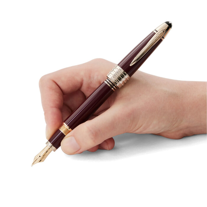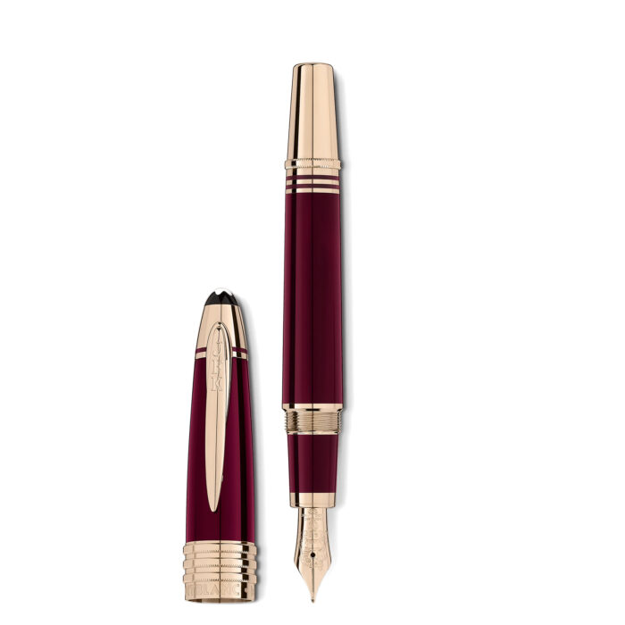 Iniziamo dal colore bordeaux scelto per il corpo ed il cappuccio della penna. Un colore che ricorda gli anni universitari di Kennedy ad Harvard prima dell’arruolamento di “JFK” negli United States Navy. Ovviamente la penna è realizzata in pregiata resina selezionata da Montblanc, come da tradizione per gli strumenti da scrittura di una certa importanza.