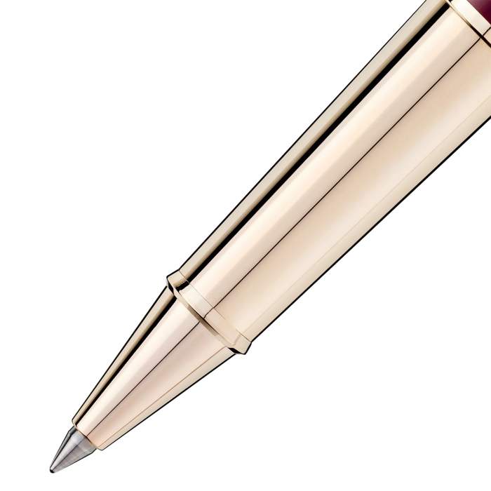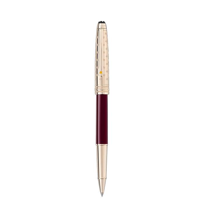Realizzata in lacca bordeaux traslucida, sulla Montblanc Le Petit Prince roller Doué 125300 primeggiano ovviamente i tre anelli finitura oro “champagne” con impresso il numero individuale della penna e la scritta Meisterstück. Quest’ultimo, tra l’altro, è sempre stato uno dei tratti distintivi di queste meravigliose penne.