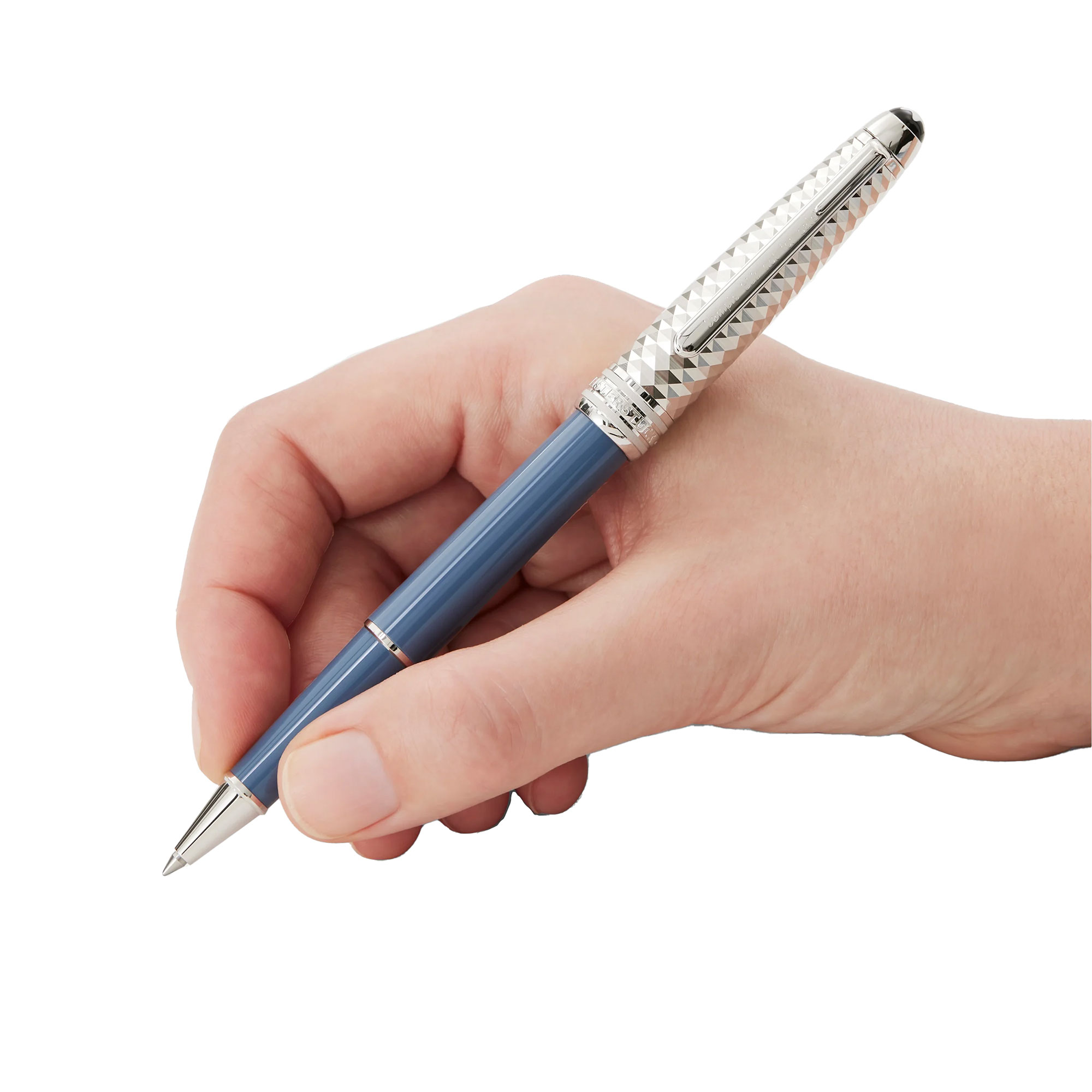 Realizzata in pregiata resina, questa roller si distingue soprattutto per il colore. Un bellissimo blu ispirato al ghiacciaio “Mer de Glace” del Monte Bianco. E sempre per ricalcare l’ispirazione al ghiaccio e alla montagna, sul cappuccio metallizzato sono incise tanti cristalli. O meglio, la rappresentazione delle rifrazioni dei cristalli di ghiaccio.