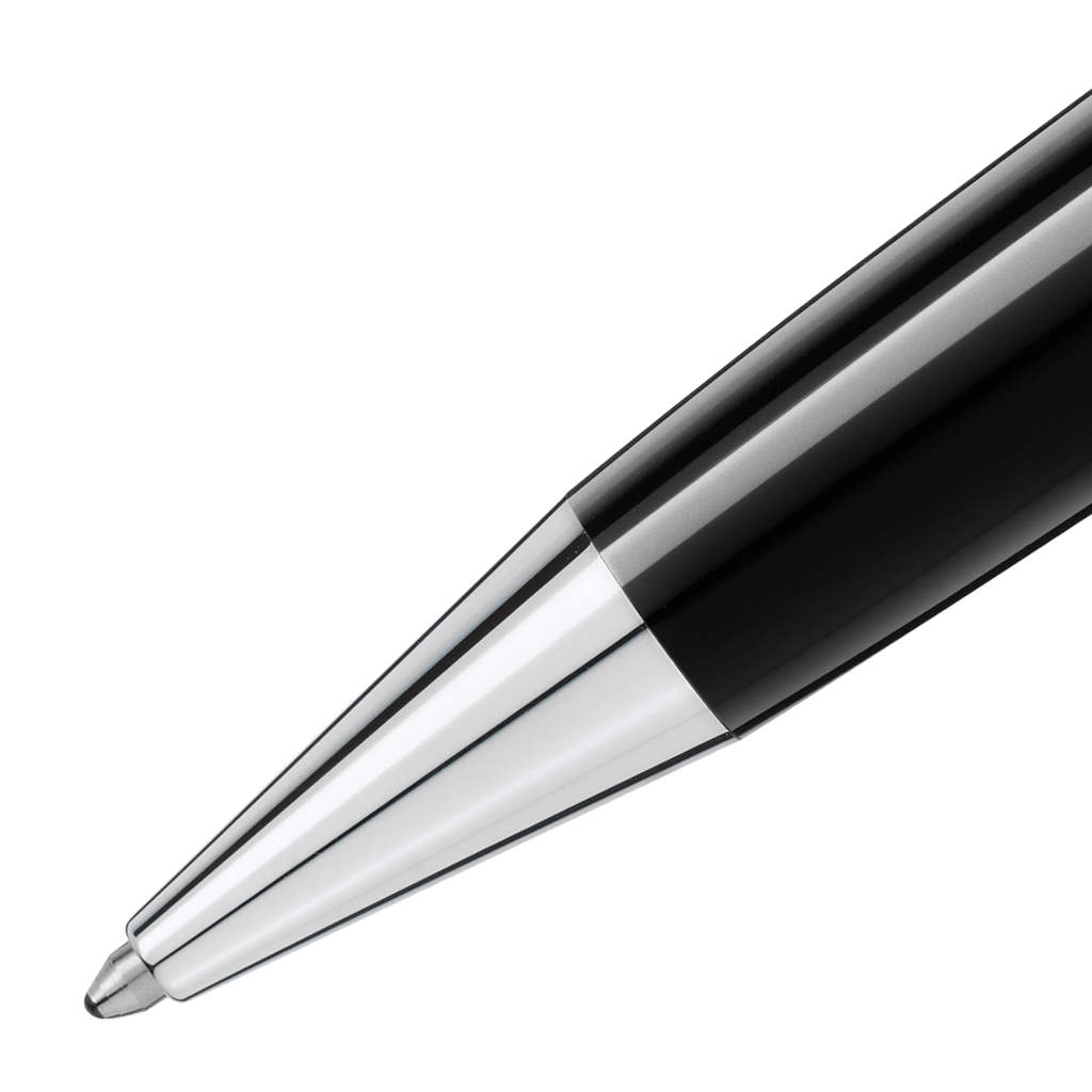 Realizzata in pregiata resina nera, sulla penna sfera LeGrand 7569 primeggiano i tre anelli finitura platino con impresso il numero individuale della penna e la scritta Meisterstück. Quest’ultimo, tra l’altro, è uno dei tratti distintivi di queste meravigliose penne.