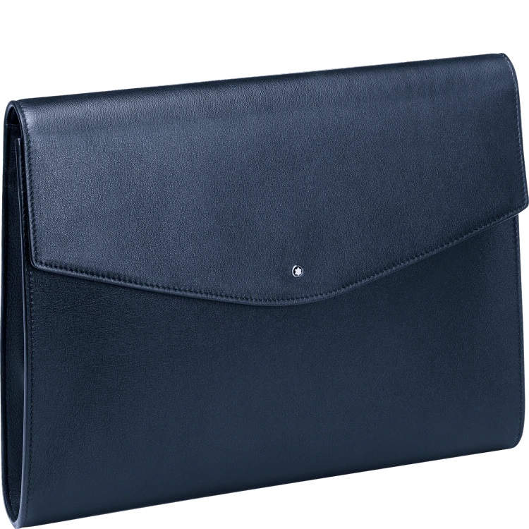 Realizzata in morbida e granulosa pelle di vitello pieno fiore, la borsa portadocumenti è lavorata seguendo quelle che sono le rigorose linee guida della collezione Meisterstuck Sfumato. Abbiamo quindi la pelle conciata al cromo con tintura passante, come ogni prodotto di alta qualità Montblanc richiede. Usando il pennello, gli artigiani Montblanc riescono infine ad ottenere il famoso effetto sfumato. Che qui è reso meravigliosamente dal color blu navy scelto per la borsa. E l’effetto sfumato si vede davvero.
