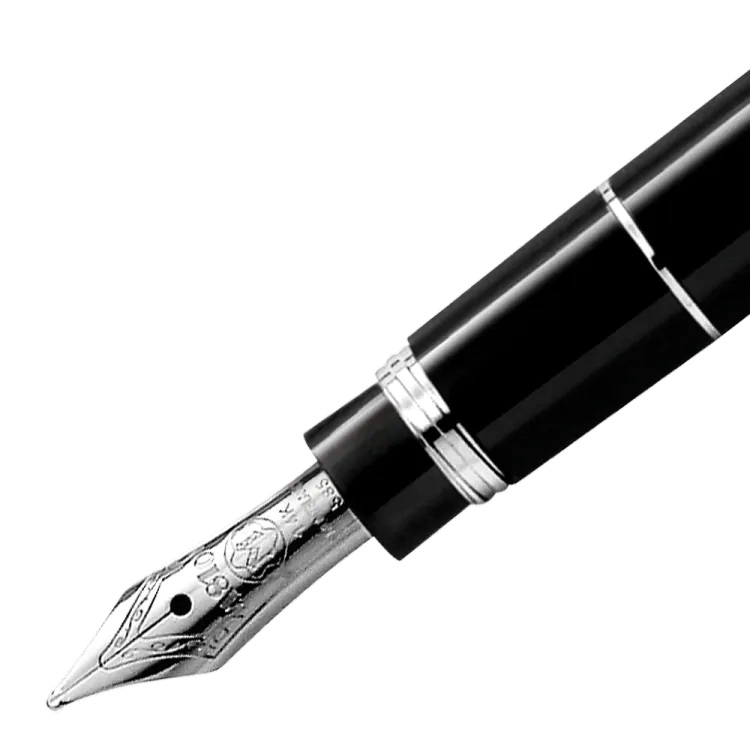 Realizzata in pregiata resina nera con pennino misura “F” in oro bianco 14 carati, sulla Mozart 107705 primeggiano i tre anelli finitura platino con impresso il numero individuale della penna e la scritta Meisterstück. Quest’ultimo, tra l’altro, è uno dei tratti distintivi di queste meravigliose penne.