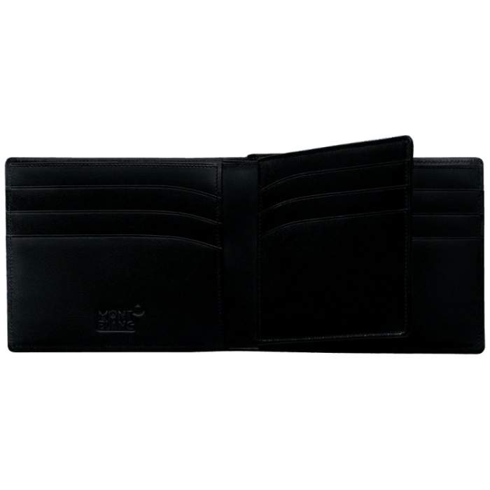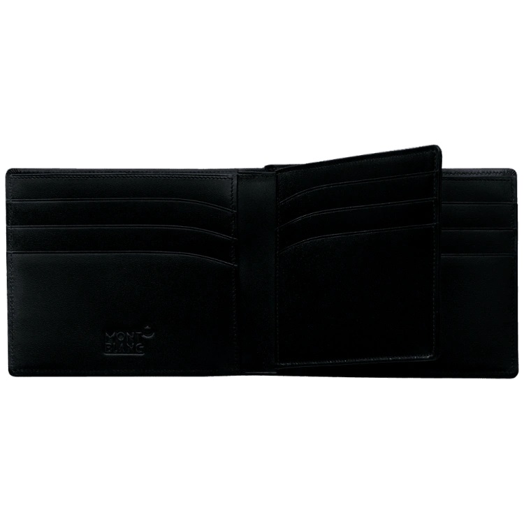 La fodera interna in jacquard con il logo Montblanc è un ulteriore tocco di classe. Le dodici taschette per carte di credito, i due scomparti porta banconote e le cinque taschette extra sono tutti rivestiti di questo morbido e particolare tessuto.