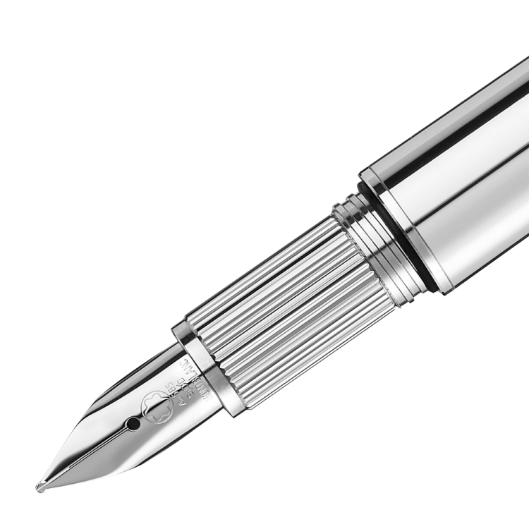 Essendo una stilografica, particolare attenzione è stata mostrata nella realizzazione del pennino, qui proposto in oro bianco Au585 / 14K. Lavorato ed intarsiato interamente a mano, il pennino di misura F presenta inoltre una bella finitura rodio.