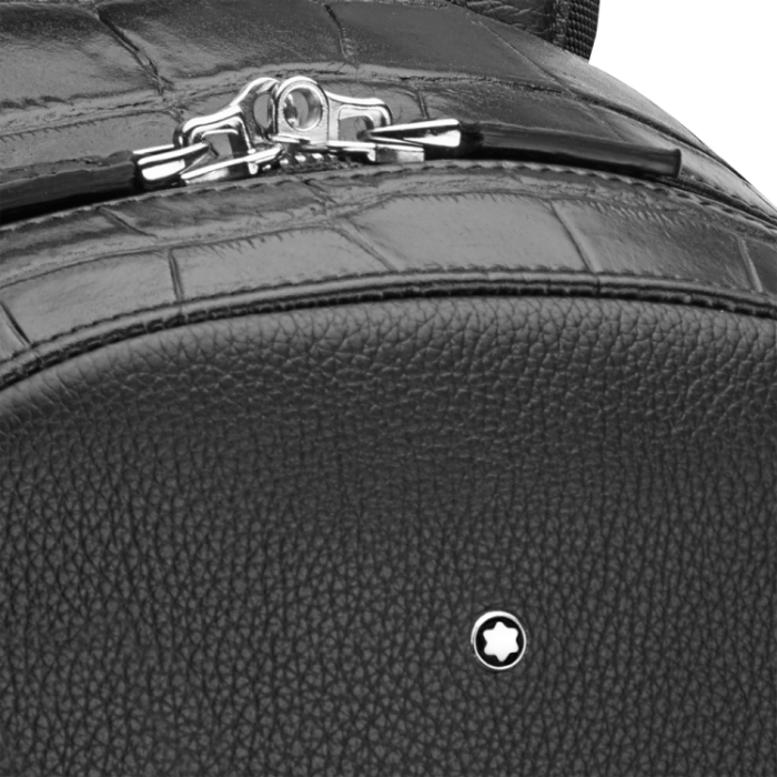 Realizzato in un mix di pelle di vacchetta pieno fiore 100% italiana e pelle di vitello, lo zaino si discosta un po’ dal classico stile Meisterstück Soft Grain. Abbiamo comunque la pelle conciata al cromo con tintura passante, come ogni prodotto di alta qualità Montblanc richiede. Ma la stampa coccodrillo della pelle di vitello è un tocco originale e molto gradevole, che mai ci saremmo aspettati su uno zaino di questa collezione.