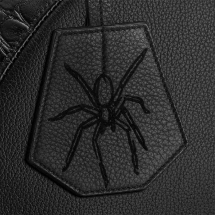 La fodera interna jacquard presenta dei motivi particolari a forma di ragno. Un richiamo che troviamo anche nella targhetta identificativa dello zaino.