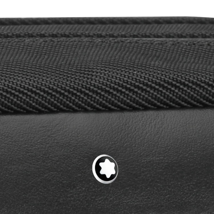 Il materiale qui utilizzato è il nylon a costine. Resistentissimo, idrorepellente, antimacchia ed antigraffio, il nylon di Montblanc è davvero di altissima qualità. Ed infatti è usato in praticamente tutte le referenze della collezione My Montblanc Nightflight. I dettagli sono invece in morbida pelle di vitello concia cromo, qui con tintura passante color nero. Lo stesso nero del tessuto nylon a costine.