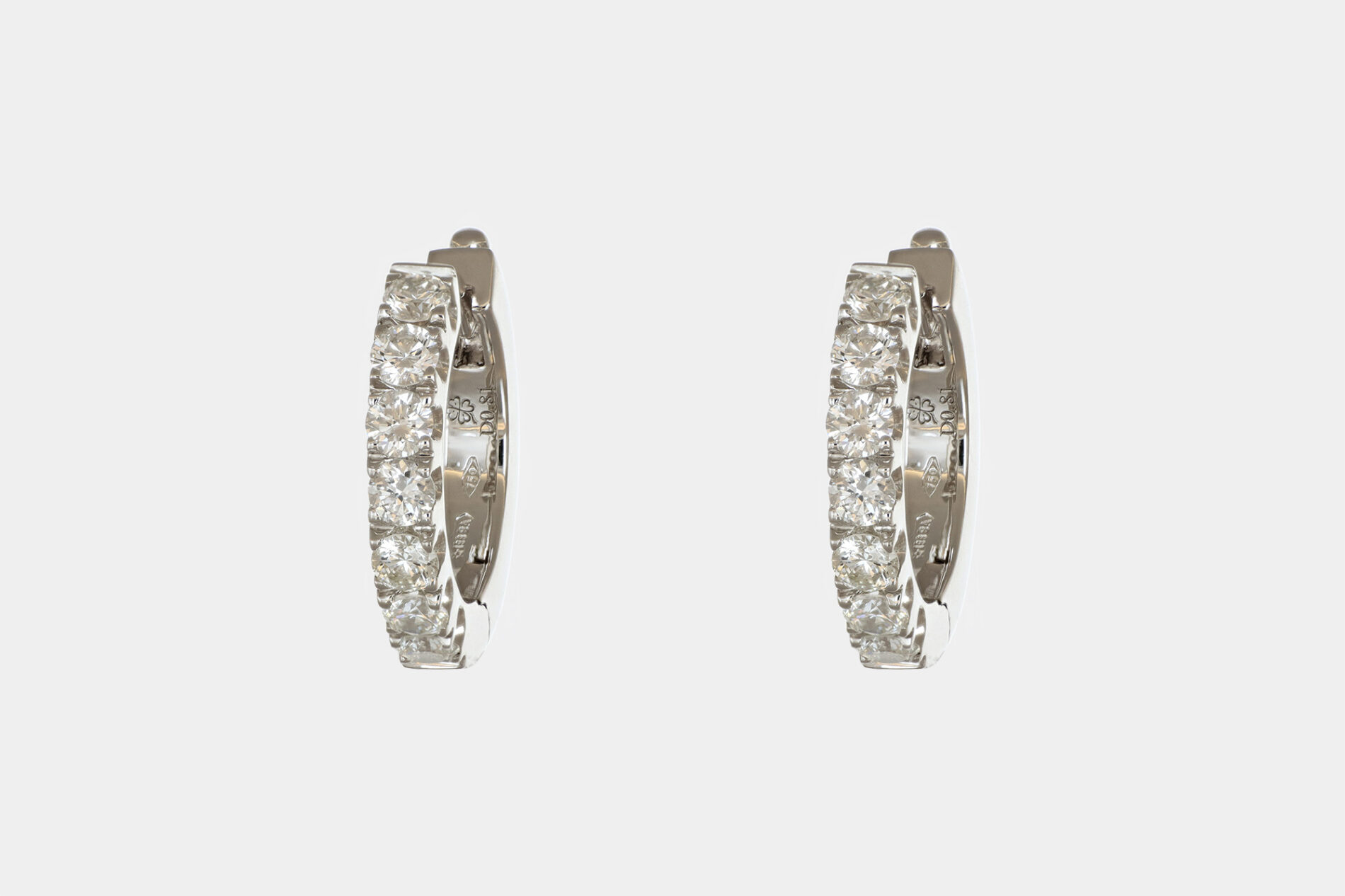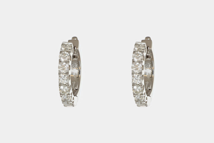 Gli orecchini a forma di cerchio sono da sempre uno dei gioielli più amati dalle donne (e non solo). Facili da indossare e mai banali, di ogni dimensione, adornati da pietre oppure “semplici”. Gioielli da tutti i giorni e per tutte le occasioni, formali ed informali. Proprio come questi orecchini a cerchietto in oro bianco con diamanti 1.5 cm Prestige.
