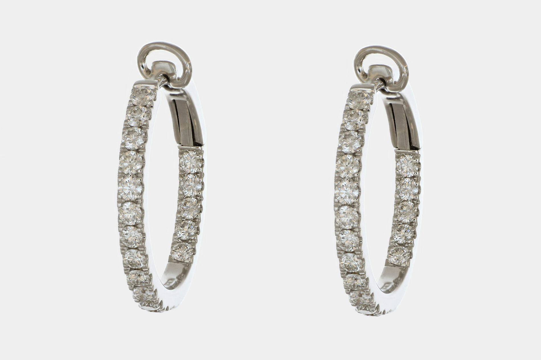 Orecchini a cerchio oro bianco con pavé interno 2.4 cm Prestige – Acquisto sicuro e garantito