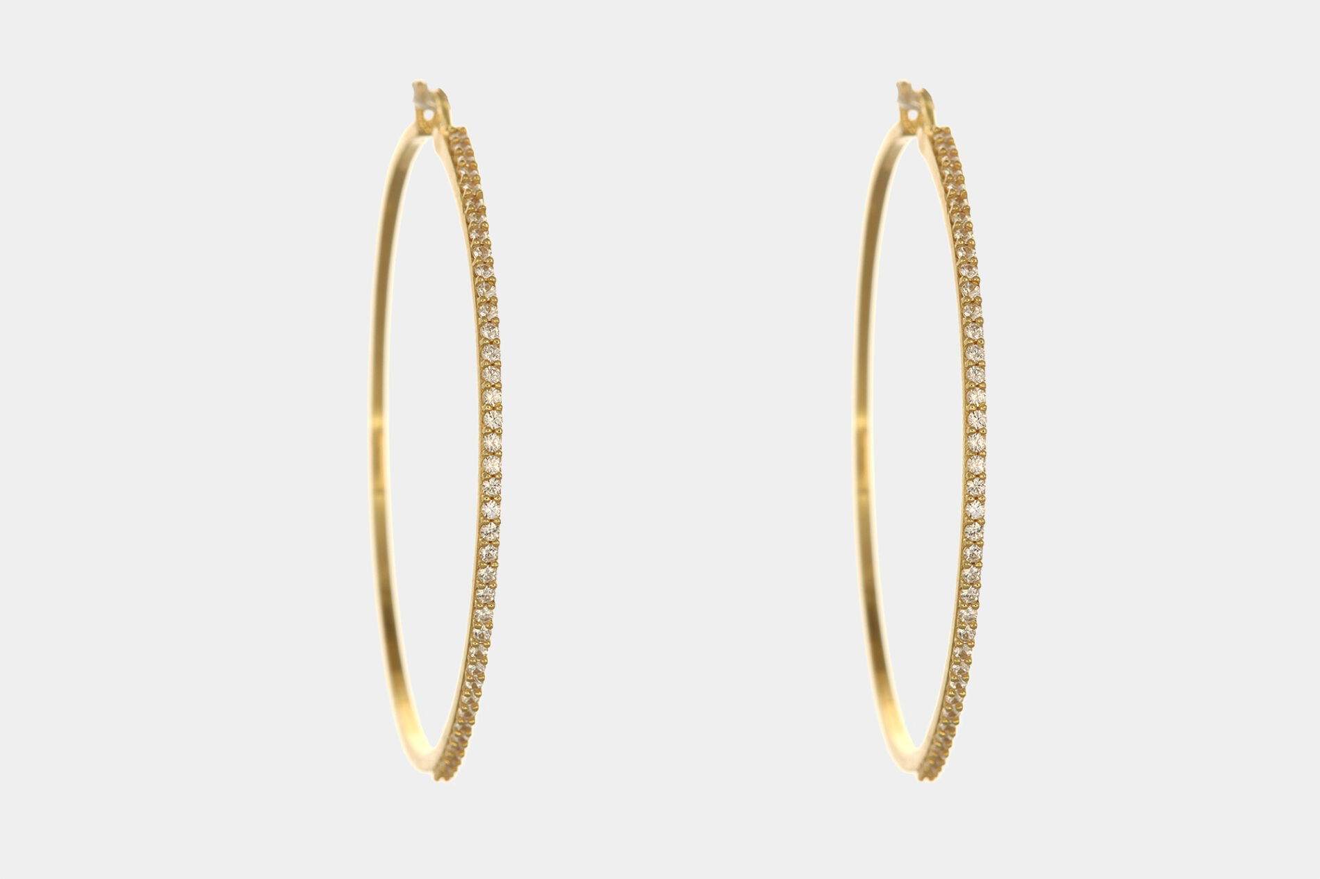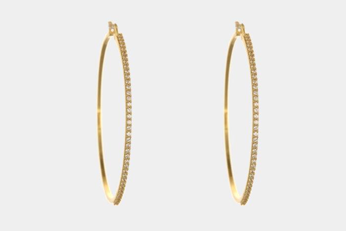 Orecchini a cerchio oro giallo con zirconi 3 cm – Acquisto sicuro e garantito