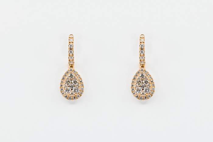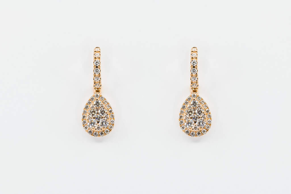 Orecchini goccia pendente Liberty Rose sono tra i gioielli più innovativi e desiderati della Gioielleria Casavola di Noci (BA). Un paio di orecchini pendenti in oro rosa con diamanti realizzati interamente dai fratelli Dario e Fabio Casavola, qui nella doppia veste di gioiellieri e gemmologi.