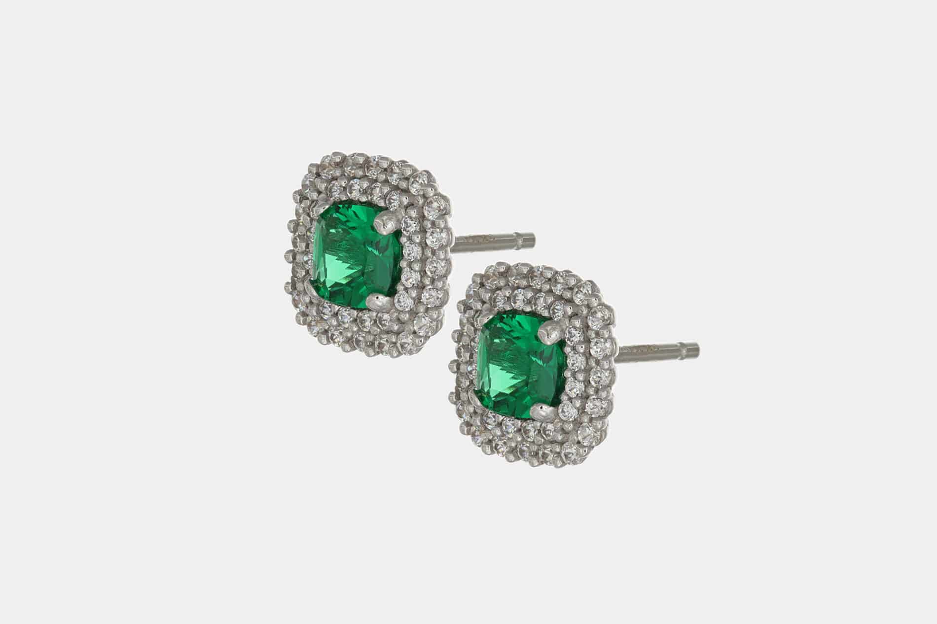 Orecchini oro bianco double halo zirconi verdi – Acquisto sicuro e garantito