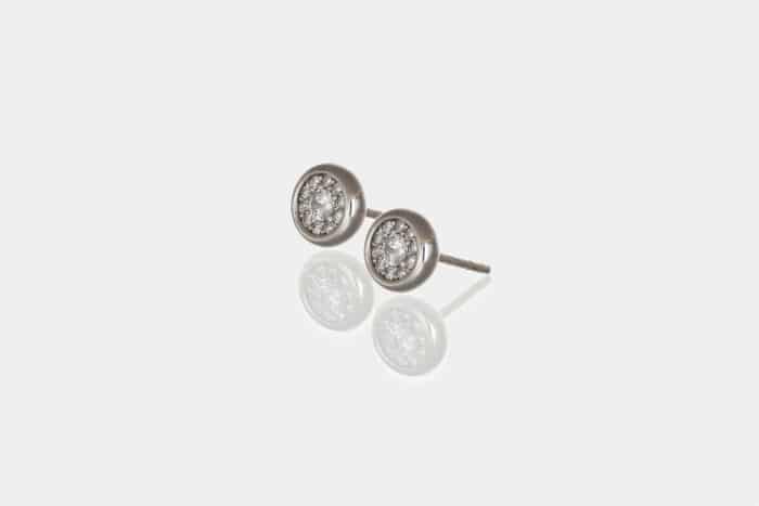 Orecchini oro bianco pavé a bottone 6.60 mm – Acquisto sicuro e garantito