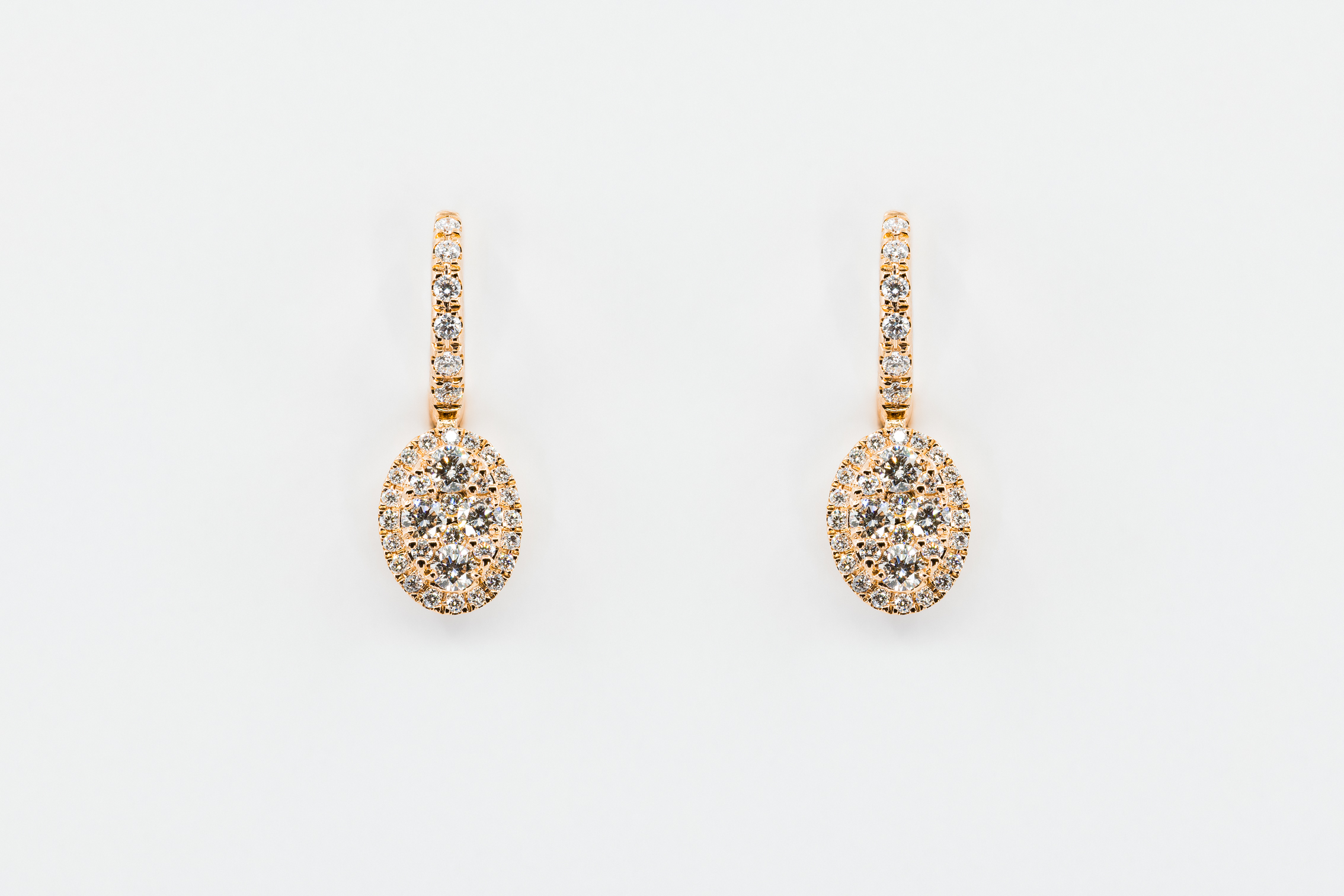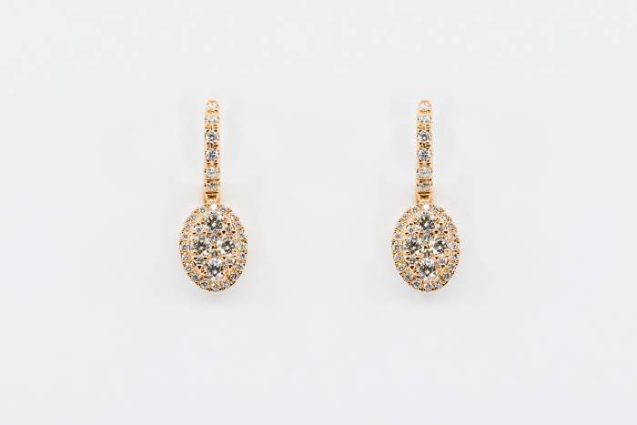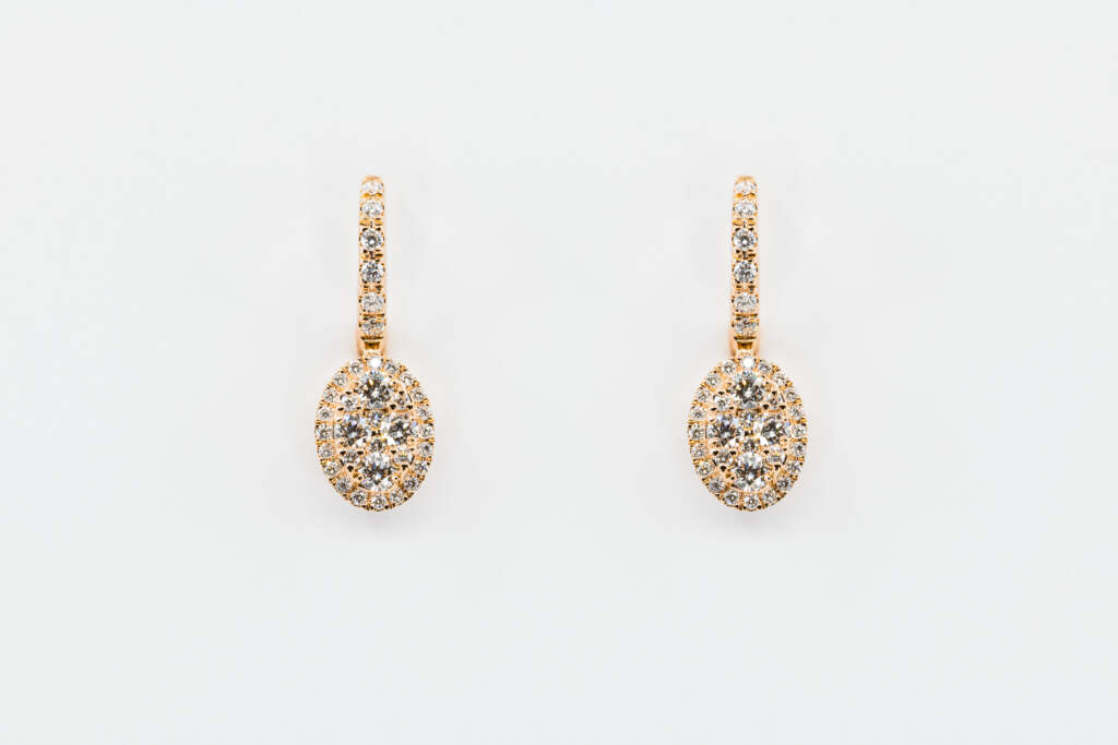 Orecchini ovali pendenti Liberty Rose sono tra i gioielli più innovativi e desiderati della Gioielleria Casavola di Noci (BA). Un paio di orecchini pendenti in oro rosa con diamanti realizzati interamente dai fratelli Dario e Fabio Casavola, qui nella doppia veste di gioiellieri e gemmologi.