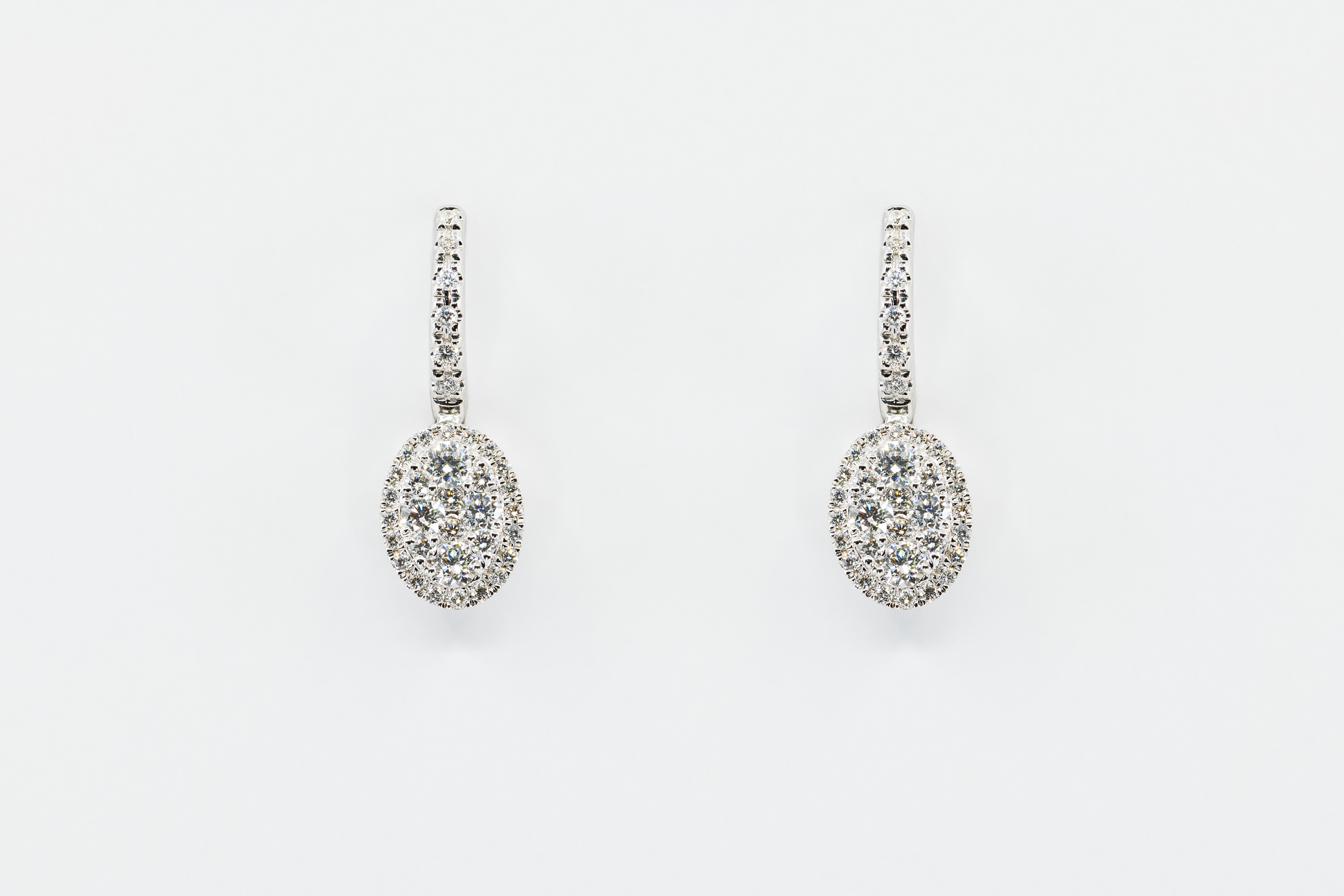 Orecchini ovali pendenti Liberty White sono tra i gioielli più innovativi e desiderati della Gioielleria Casavola di Noci (BA). Un paio di orecchini pendenti in oro bianco con diamanti realizzati interamente dai fratelli Dario e Fabio Casavola, qui nella doppia veste di gioiellieri e gemmologi.