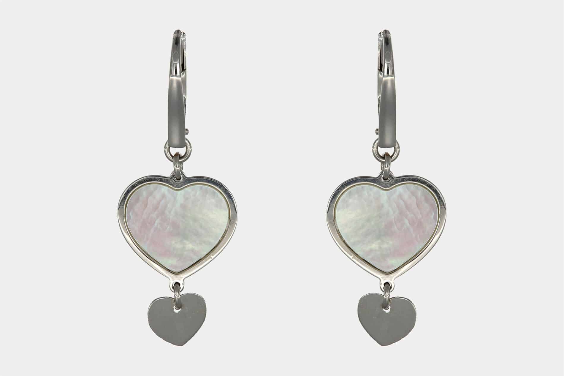 Orecchini pendente cuore oro bianco e madreperla – Acquisto sicuro e garantito