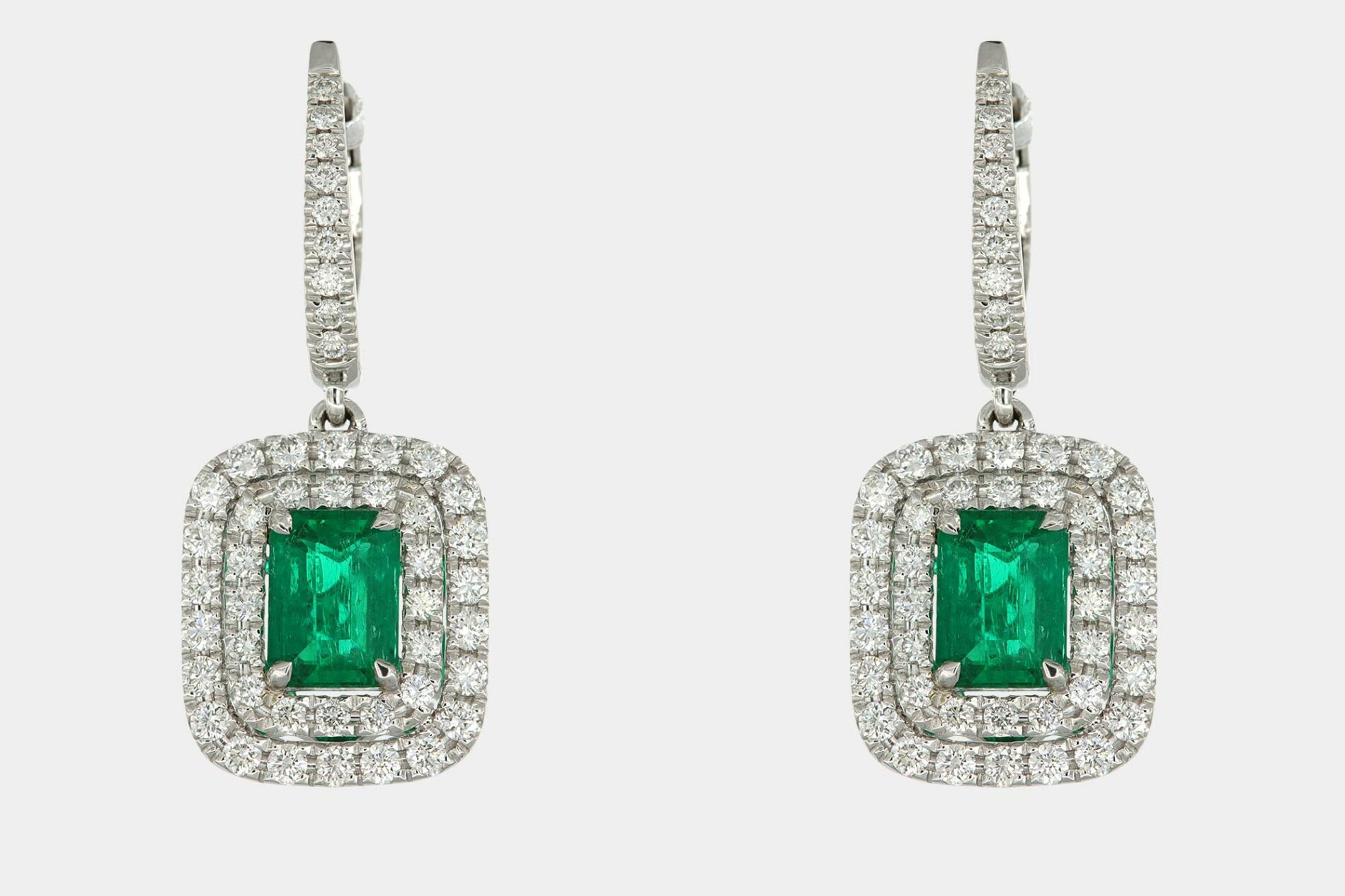 Orecchini pendenti rettangolari smeraldo Prestige White – Preziose suggestioni cromatiche