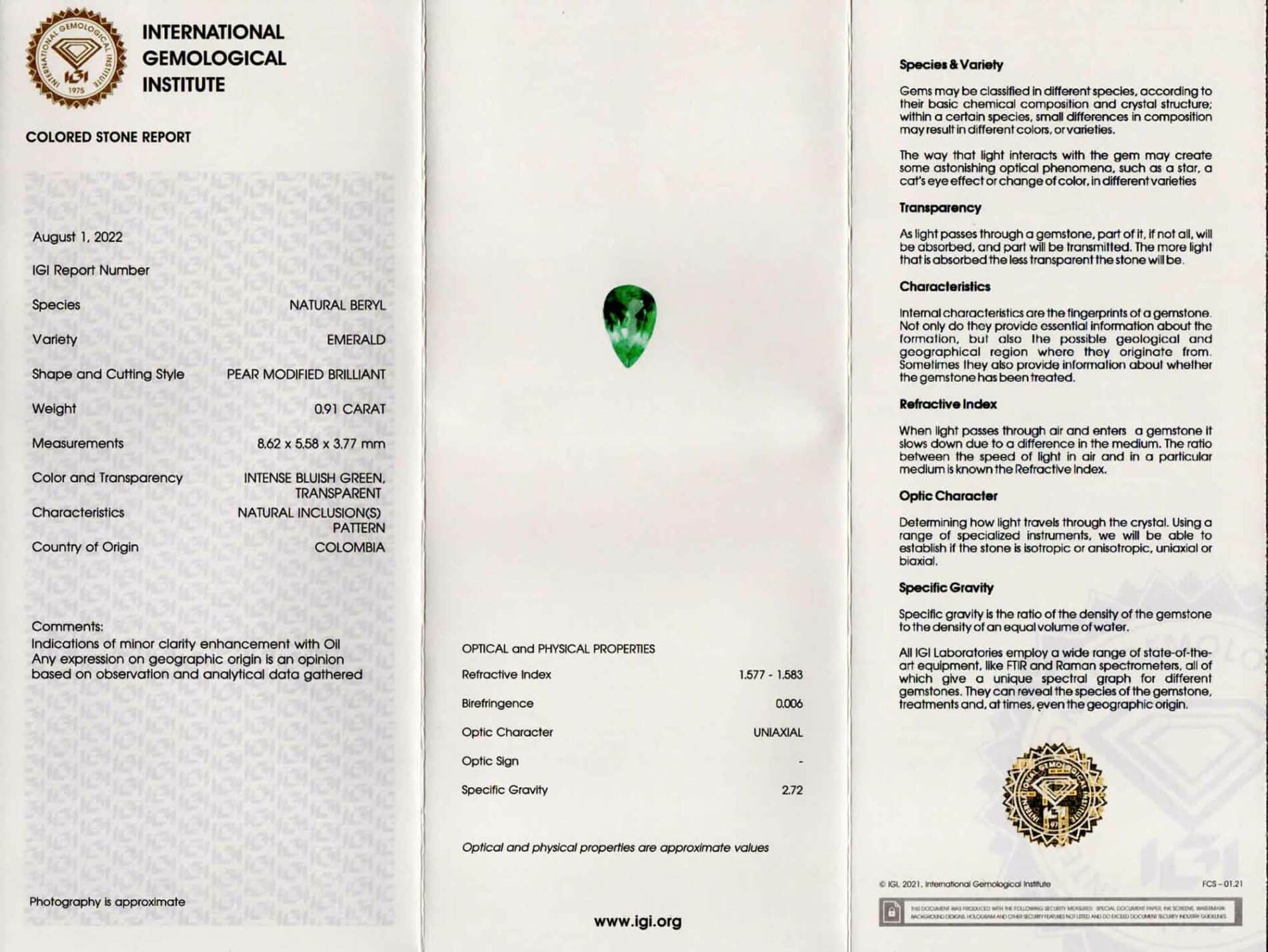 Moltissima cura è stata rivolta nella scelta degli smeraldi inseriti sulla contromaglia. Di caratura inferiore rispetto agli smeraldi scelti per i pendenti, questi sono incastonati su una speciale montatura in oro bianco che li mantiene ben saldi. Garantendone quindi la massima sicurezza.