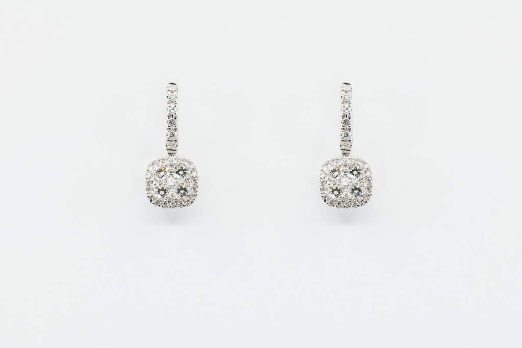 Orecchini quadrati pendenti Liberty White sono tra i gioielli più innovativi e desiderati della Gioielleria Casavola di Noci (BA). Un paio di orecchini pendenti in oro bianco con diamanti realizzati interamente dai fratelli Dario e Fabio Casavola, qui nella doppia veste di gioiellieri e gemmologi.