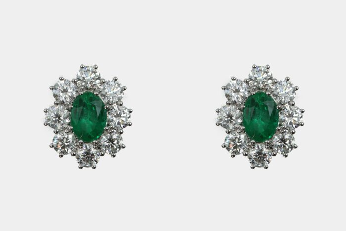 Orecchini smeraldo Gran Daisy Nature White ĆØ un gioiello ispirato alle forme ed ai colori della natura. Dei gioielli “di forma” interamente in oro bianco su cui spiccano dei bellissimi smeraldi taglio “ovale” contornati da un pavĆ© di diamanti. Un gioiello dalle caratteristiche uniche ed inconfondibili. Un’opera della Gioielleria Casavola di Noci (BA).