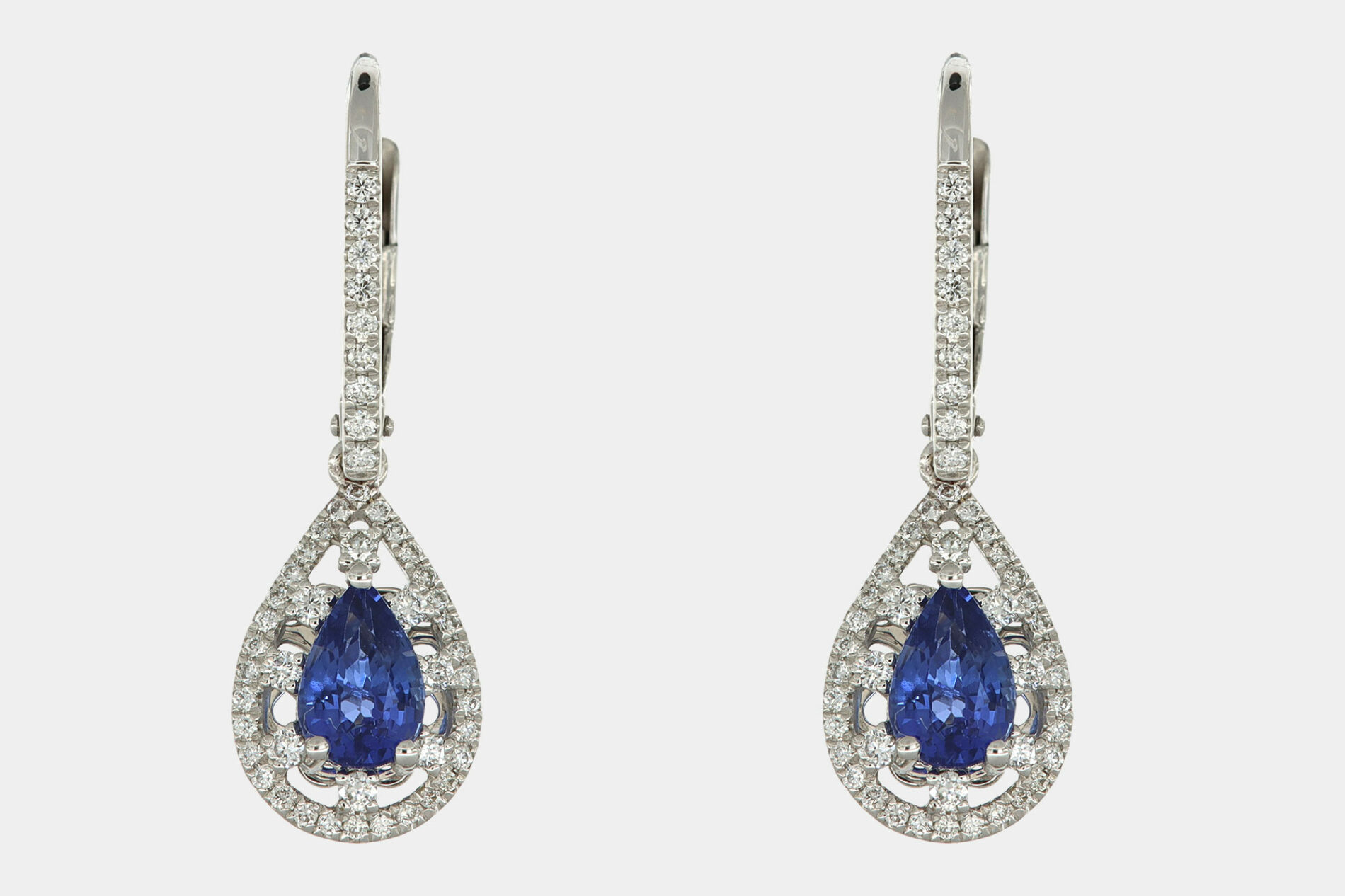 Orecchini zaffiro goccia Aquilegia Nature White è un gioiello ispirato alle forme ed ai colori della natura. Dei gioielli “di forma” interamente in oro bianco su cui spiccano degli zaffiri taglio “goccia” contornati da un pavé di diamanti. Un gioiello dalle caratteristiche uniche ed inconfondibili. Un’opera della Gioielleria Casavola di Noci (BA).