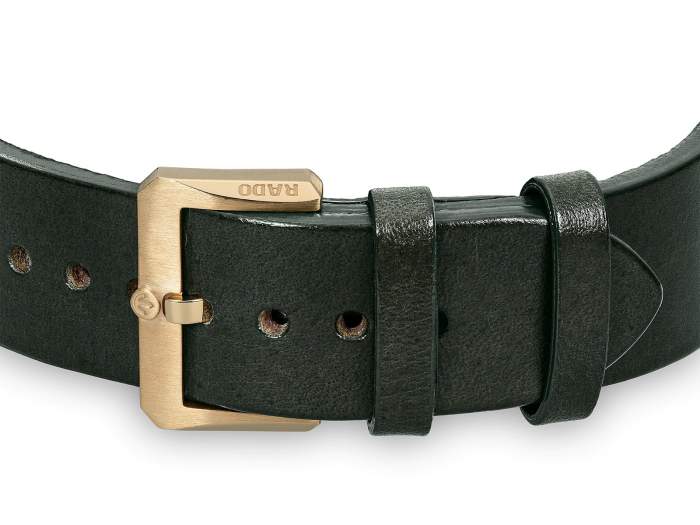 La cassa di questa nuova versione del Captain Cook di Rado è realizzata interamente in bronzo. Diverso e sicuramente intrigante, il bronzo è un materiale abbastanza peculiare: cambia leggermente colore in base alle condizioni climatiche esterne. Il bronzo usato da Rado è ovviamente di ottima qualità, ed è qui impreziosito da 3 micron di placcatura in pregiato oro giallo 23 carati.