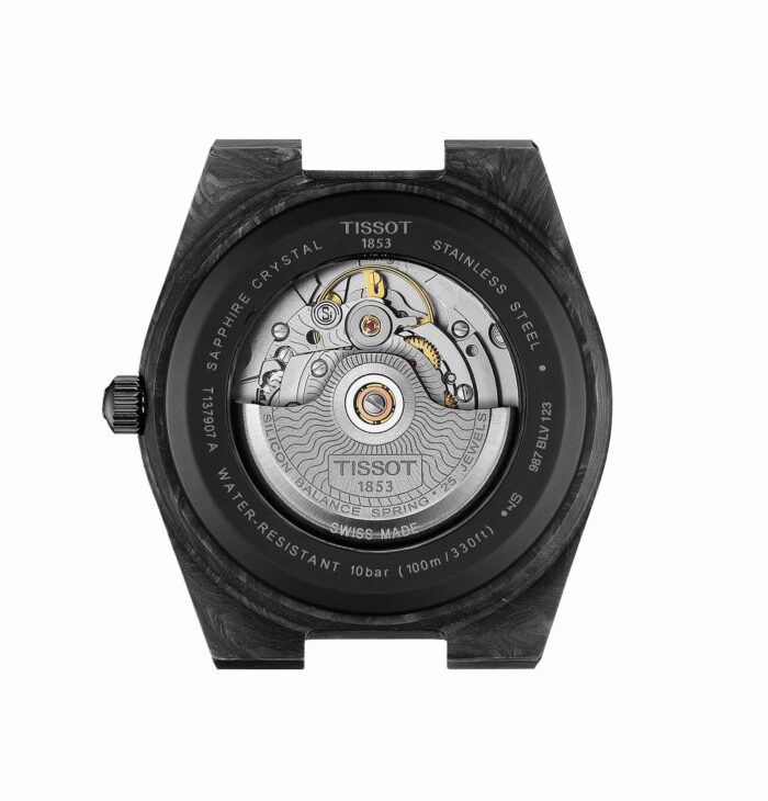 Tissot PRX Powermatic 80 T137.907.97.201.00 è un orologio automatico da uomo dalle caratteristiche eccezionali. Una creazione dalle forme iconiche e peculiari, che ricalca appieno lo spirito degli anni 70. Un orologio sottile e di design, che si adatta perfettamente a qualsiasi polso. Qui realizzato per la prima volta in carbonio forgiato marmorizzato nero e grigio con calibro automatico “Powermatic 80” dotato della molla di bilanciamento in silicio!