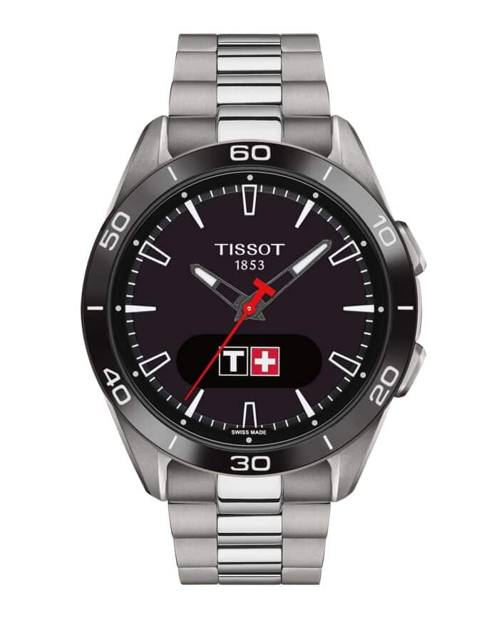 Tissot T-Touch Connect Sport T153.420.44.051.00 è una grande novità super tecnologica che il brand svizzero ha introdotto nel 2024. Un orologio al quarzo con funzione tattile e carica solare che Tissot ha realizzato pensando soprattutto agli sportivi. Una versione molto avanzata del T-Touch che riesce a coniugare materiali nobili come titanio e ceramica a soluzioni “tech” quali il luminoso schermo AMOLED ed il rilevatore di battito cardiaco.
