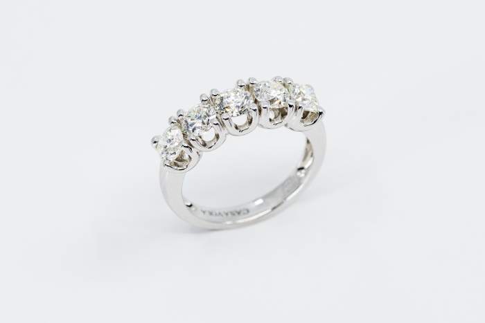 Veretta 5 diamanti white è uno degli anelli da fidanzamento e proposte di matrimonio più amati della nostra gioielleria. Un anello con ben cinque diamanti dalla linea classica ed elegante. Ed anche se viene spesso associato ai gioielli da fidanzamento, la veretta è uno dei doni migliori per festeggiare anniversari o eventi importanti.